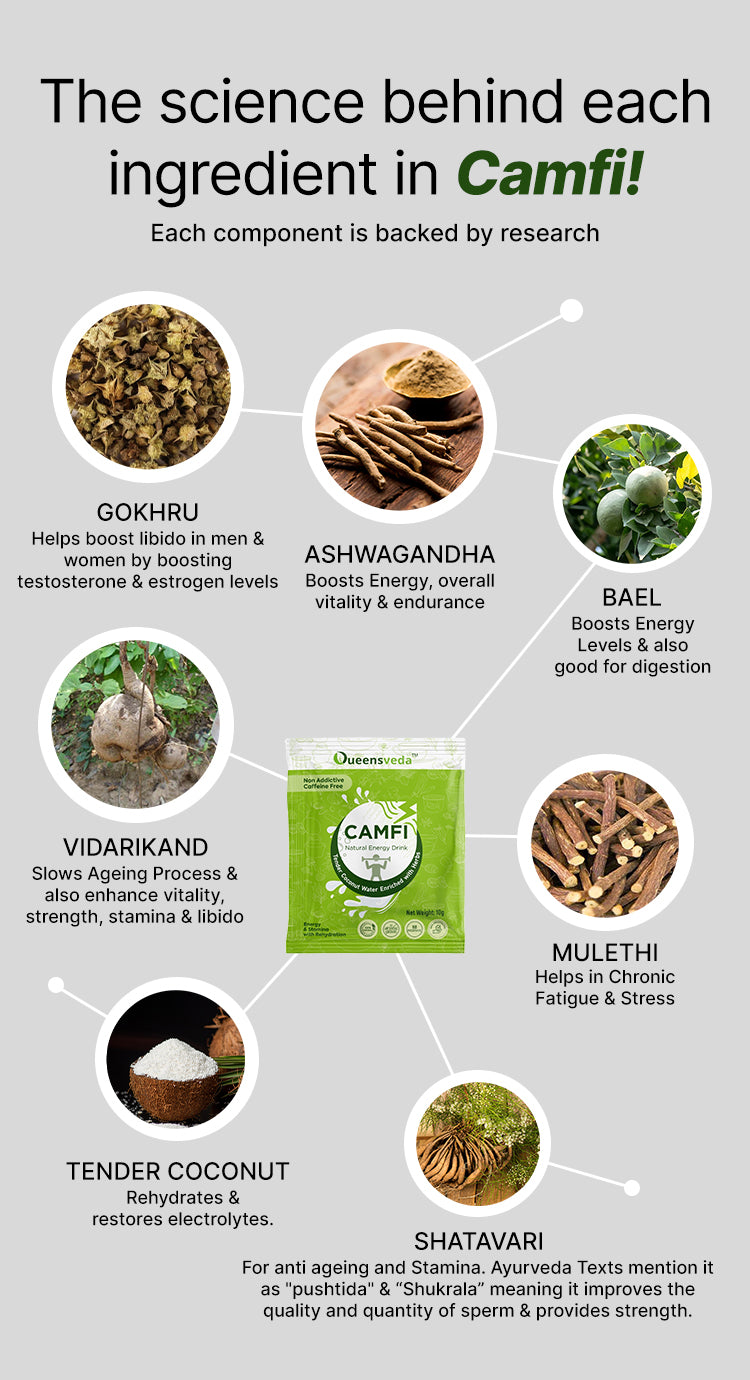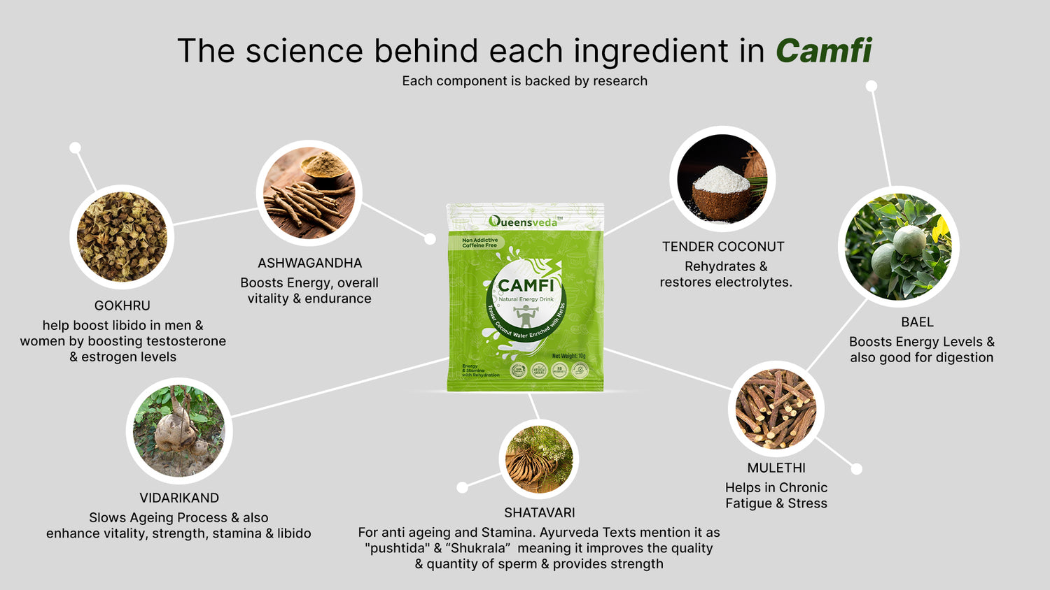 Camfi is a natural stamina drink that blends traditional Ayurvedic herbs with coconut water to give you clean, long-lasting energy. Whether you're working, studying, or training, Camfi supports your stamina and focus without the crash of synthetic energy boosters.