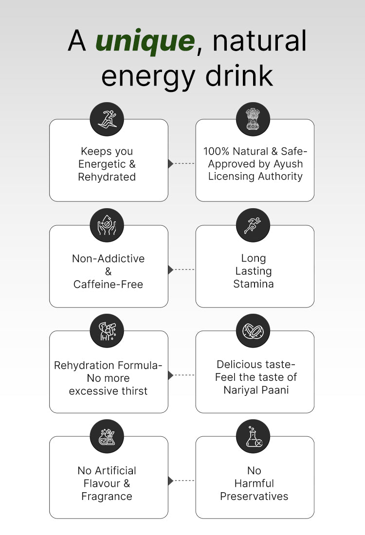 World’s first Natural & Caffeine Free Energy & Stamina Drink prepared from “Tender Coconut Water”- Designed in India for the world!